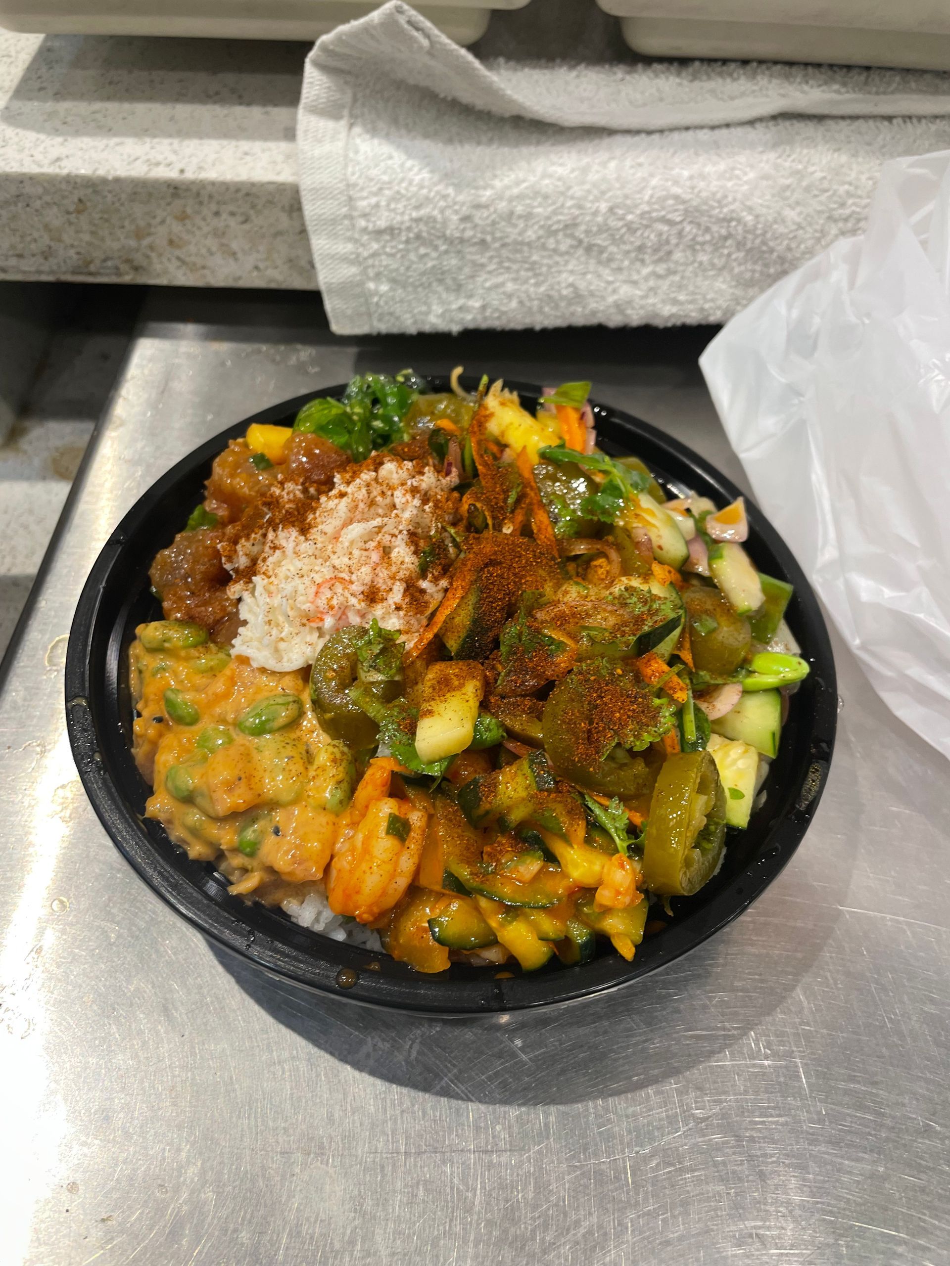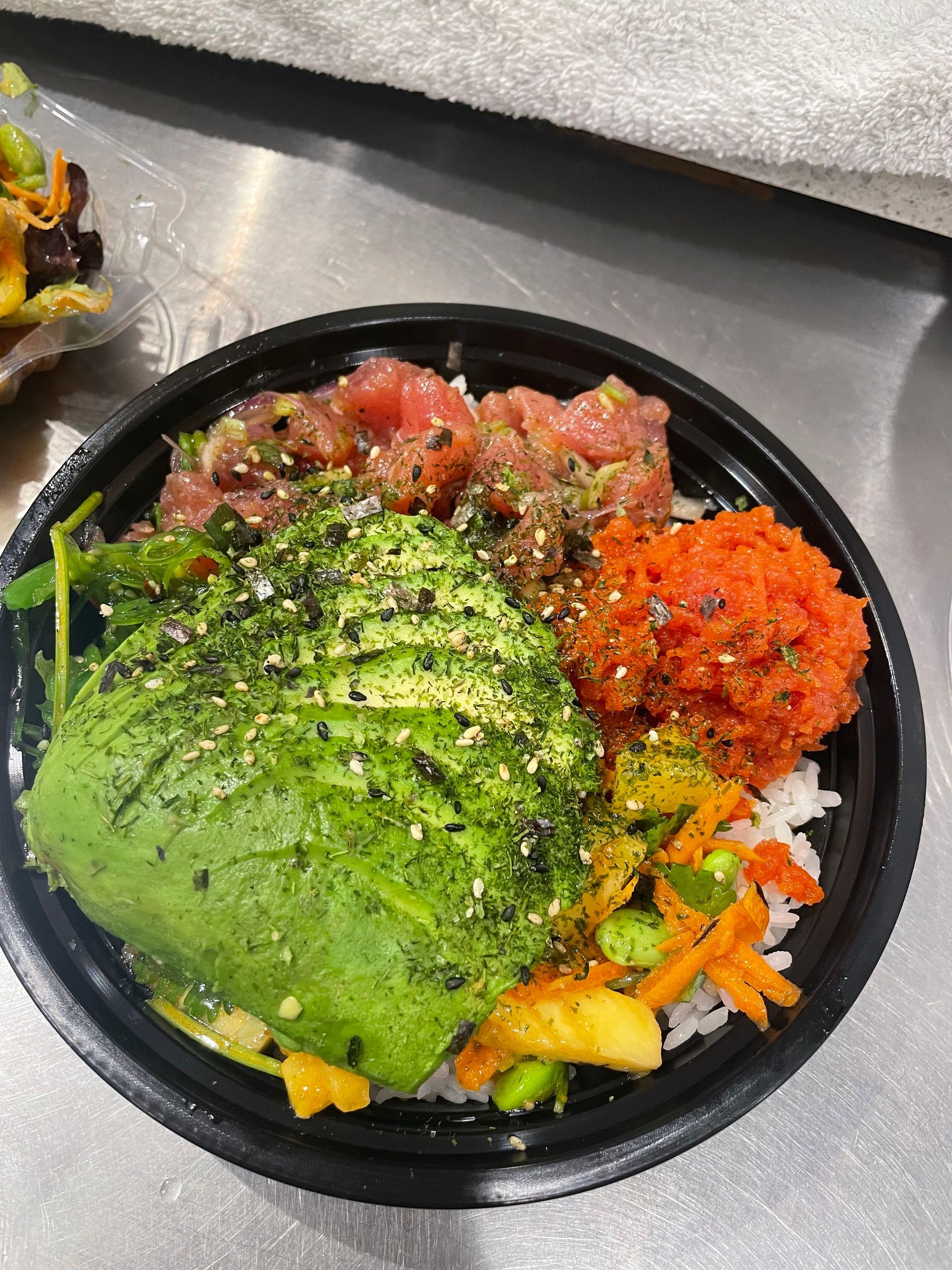 "I love the poke here! The fish is fresh, the portions are large, and they have a couple of very tasty options other than just regular salmon and tuna, like the tuna Maui, which has mango, and the blazing salmon, which is spicy."